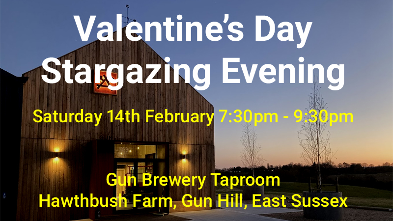 from 7:30pm to 9:30pm on Saturday 14th February. Come along for an evening of stargazing and star lore. The perfect way to celebrate Valentine's Day!